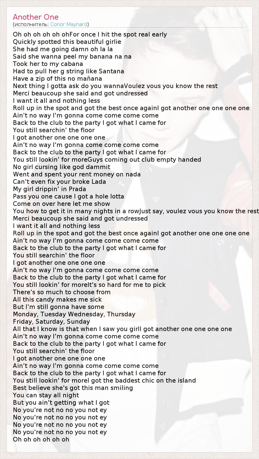 Это интересно:Conor Paul Maynard - молодой британский исполнитель. Родился 21 ноября 1992 года в Брайтоне, Великобритания. Мир узнал о нем как о исполнителе каверов, которые парень выкладывал на сайт Youtube. Благодаря каверу на песню "Beautiful Monster"он привлек внимание исполнителя и автора этой песни - Ne-Yo. В скором времени Конор подписал контракт с музыкальным лейблом Parlophone. В марте певец выпустил клип на дебютный... продолжение