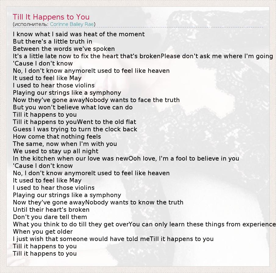 А как ты думаешь, о чем песня "Till It Happens to You" ?