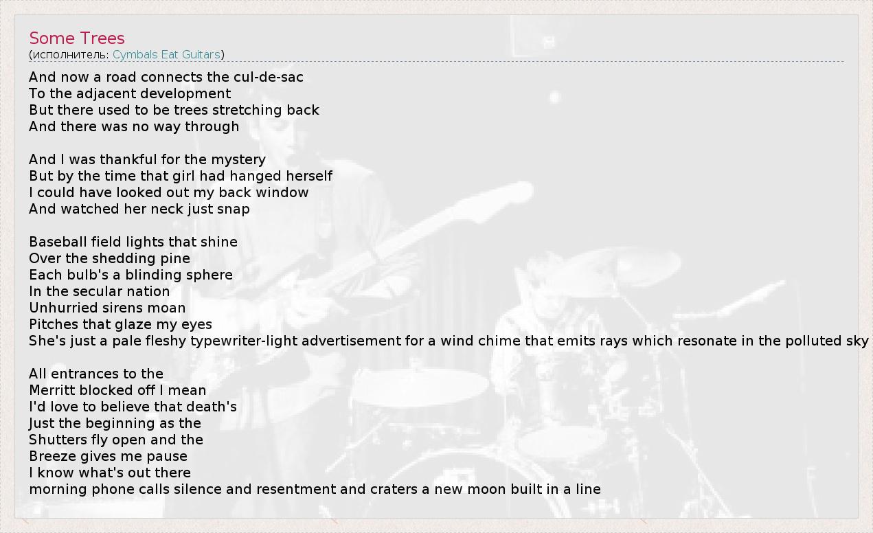А как ты думаешь, о чем песня "Some Trees" ?