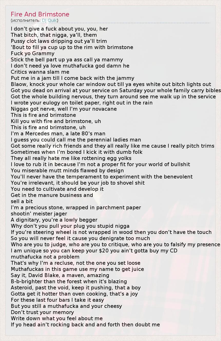 А как ты думаешь, о чем песня "Fire And Brimstone" ?