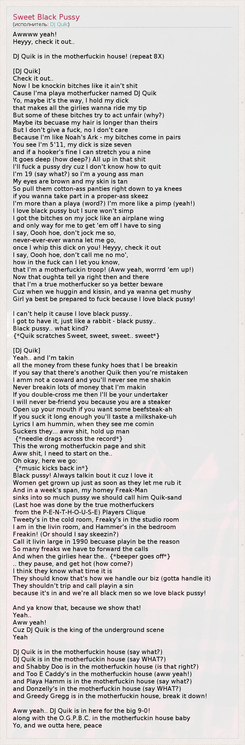 А как ты думаешь, о чем песня "Sweet Black Pussy" ?
