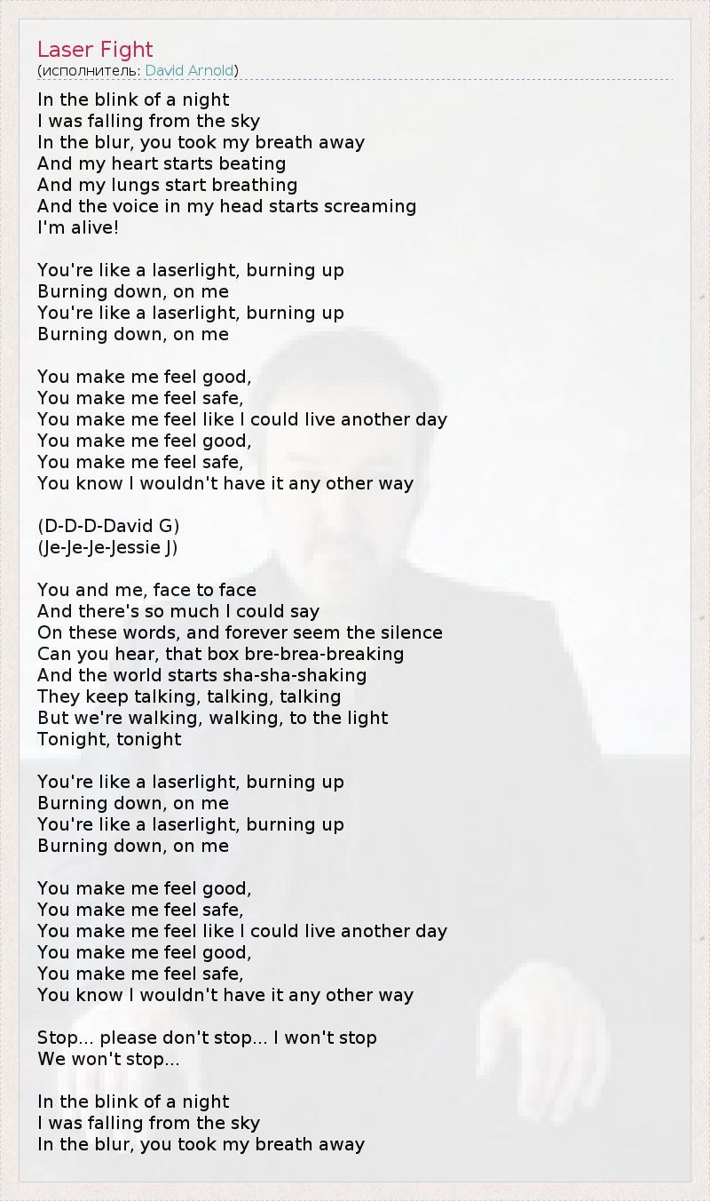 А как ты думаешь, о чем песня "Laser Fight" ?