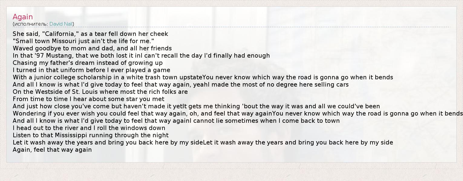 And all I know is what I'd give today to feel that way againI cannot lie sometimes when I come back to town