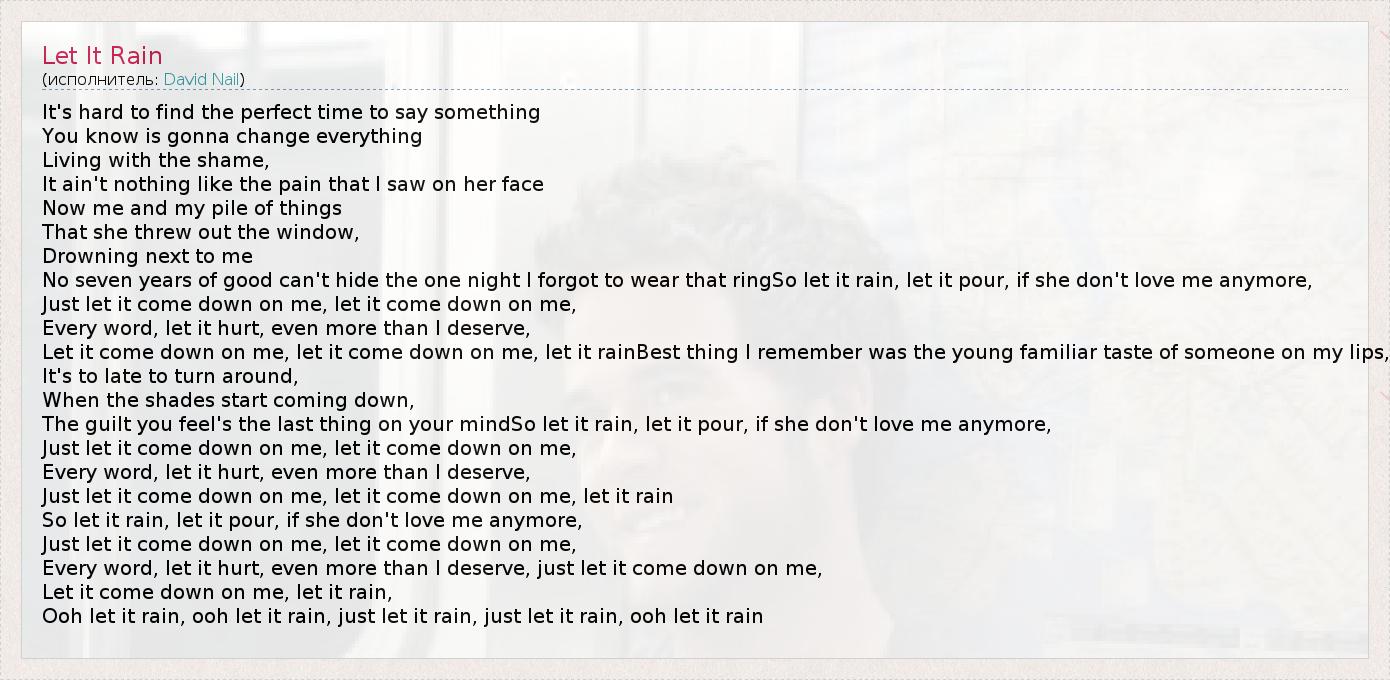 Just let it come down on me, let it come down on me, let it rain