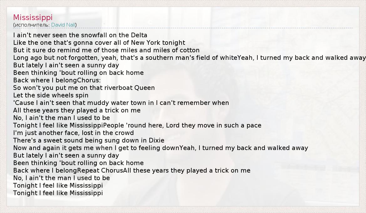 А как ты думаешь, о чем песня "Mississippi" ?