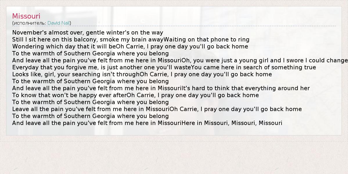 And leave all the pain you've felt from me here in MissouriHere in Missouri, Missouri, Missouri