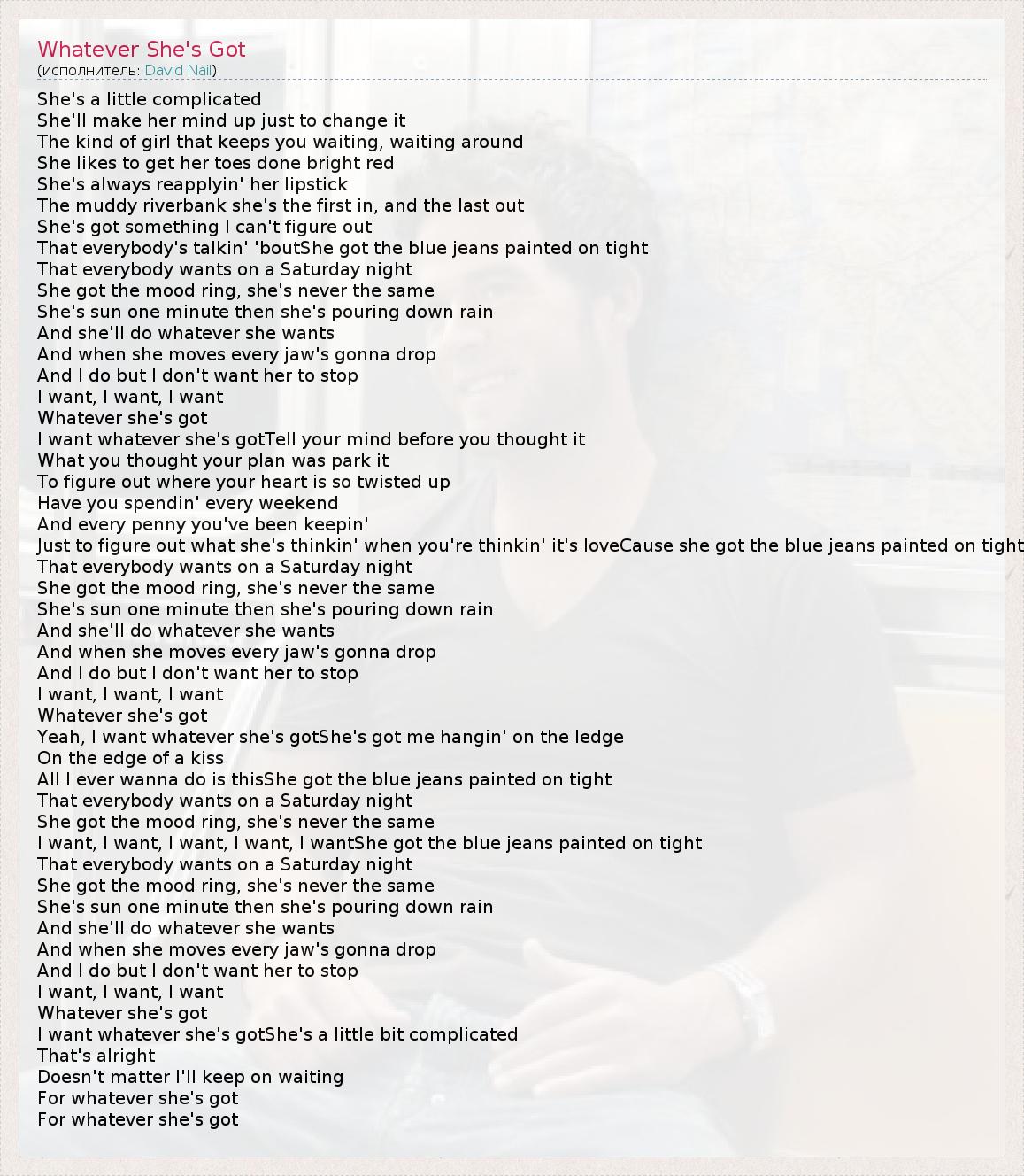 А как ты думаешь, о чем песня "Whatever She's Got" ?