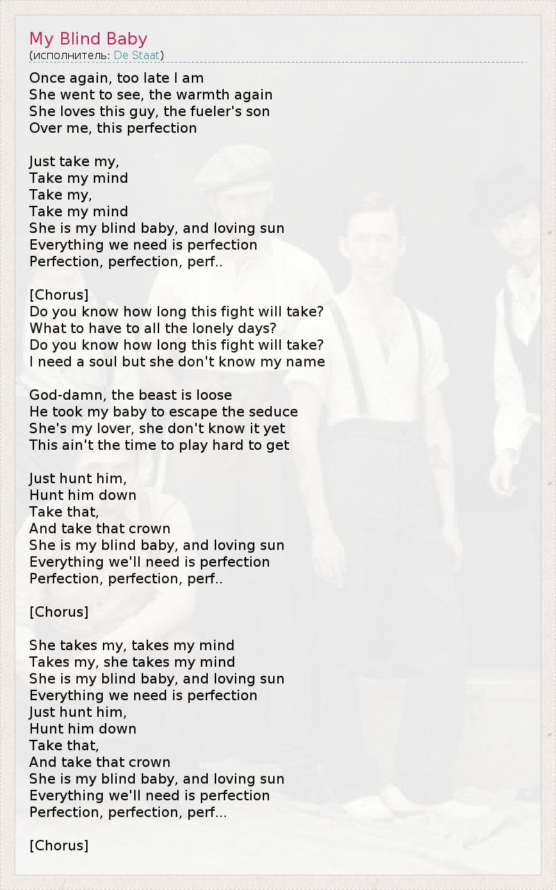 А как ты думаешь, о чем песня "My Blind Baby" ?
