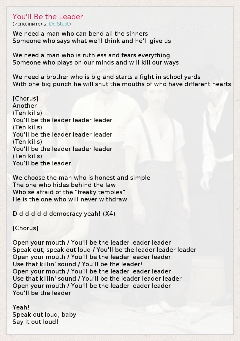 А как ты думаешь, о чем песня "You'll Be the Leader" ?