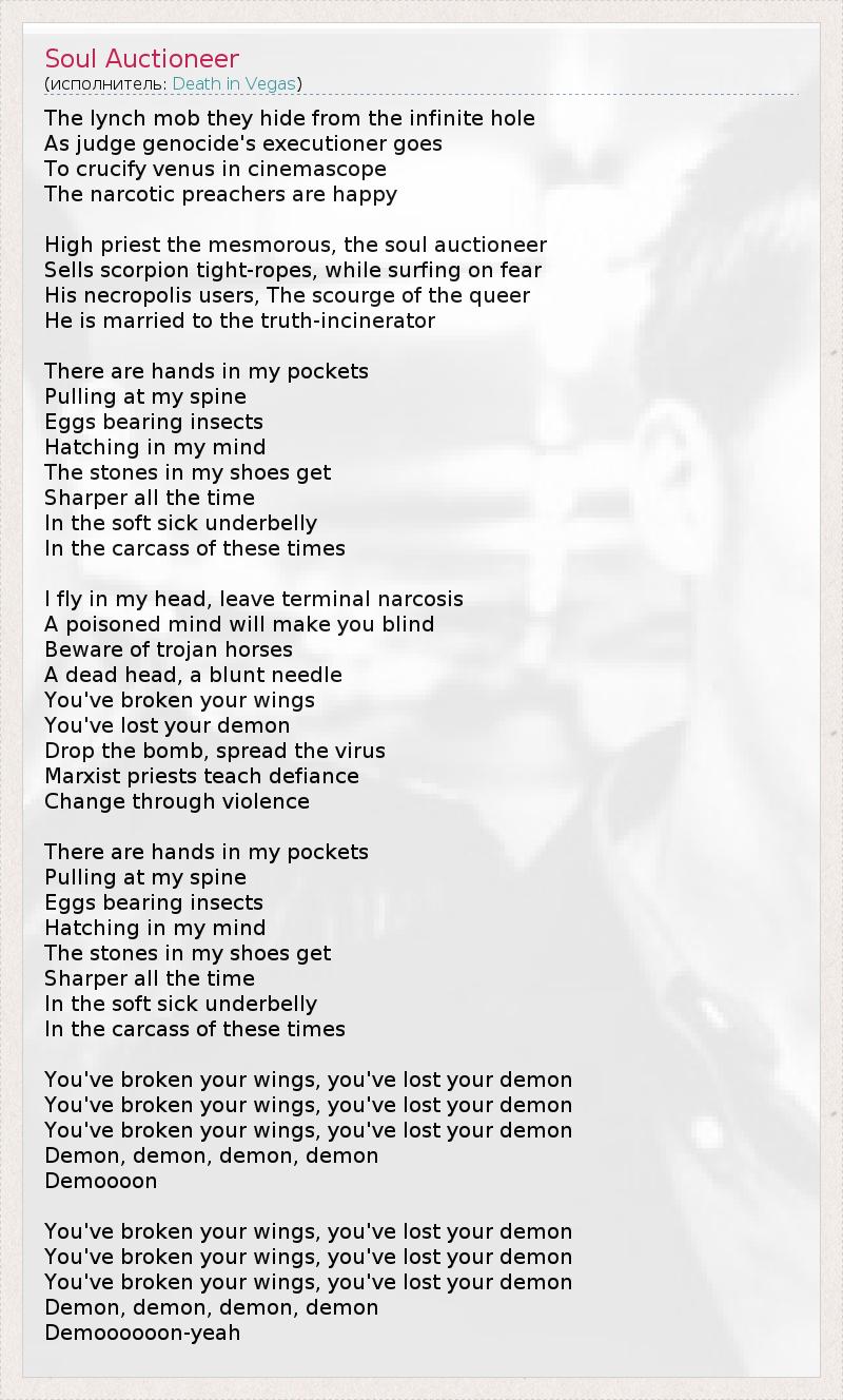 А как ты думаешь, о чем песня "Soul Auctioneer" ?