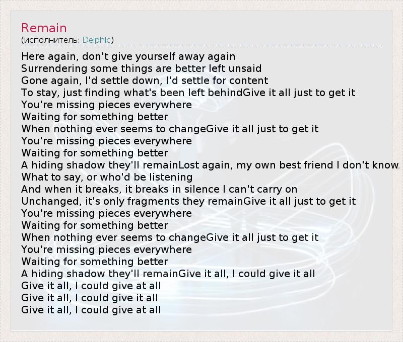 А как ты думаешь, о чем песня "Remain" ?