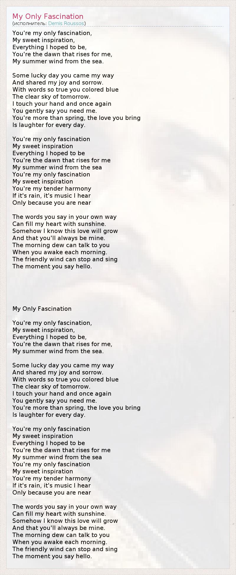 А как ты думаешь, о чем песня "My Only Fascination" ?