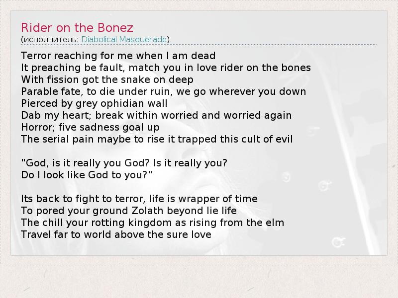 А как ты думаешь, о чем песня "Rider on the Bonez" ?
