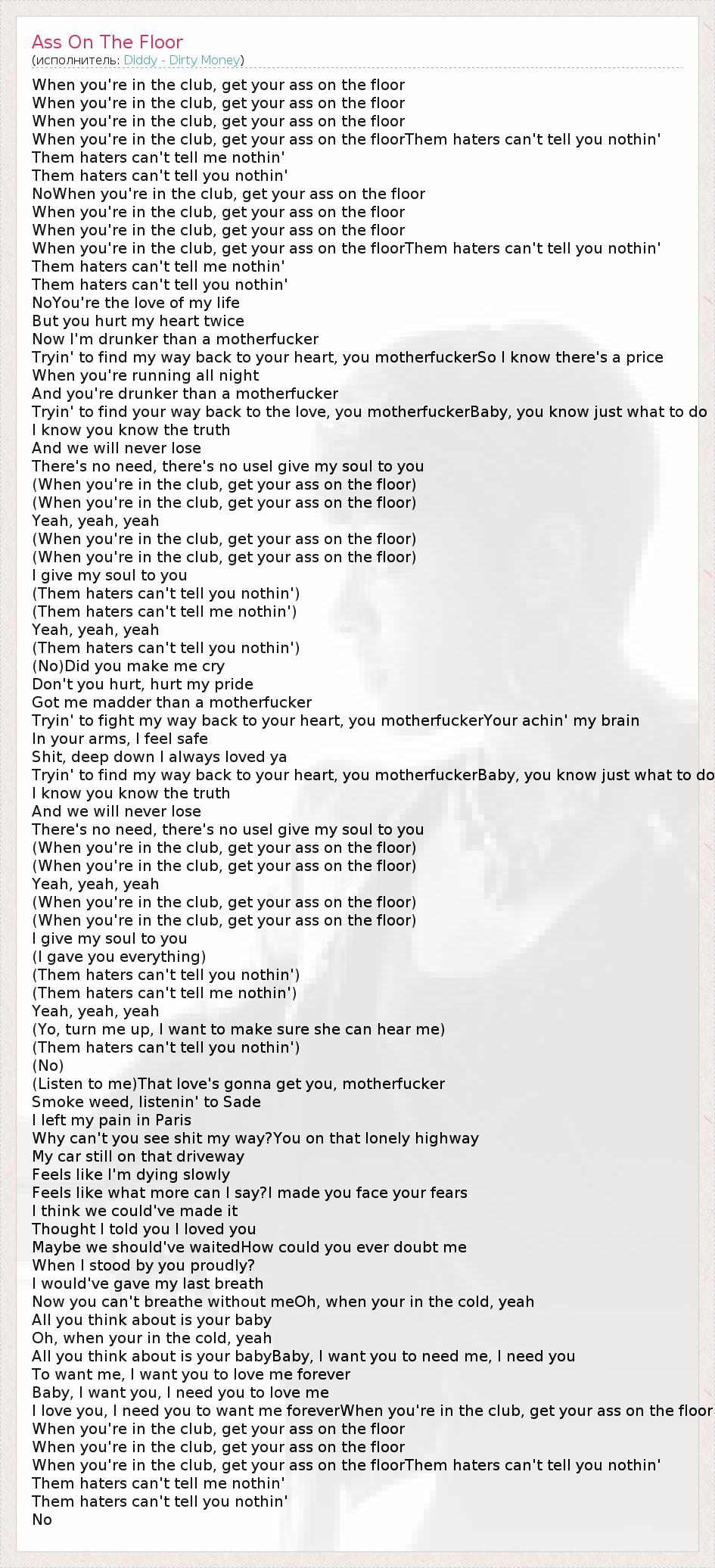 А как ты думаешь, о чем песня "Ass On The Floor" ?