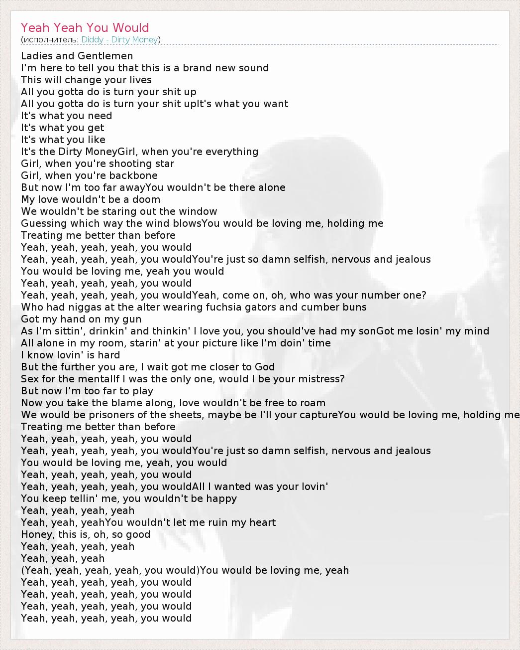 А как ты думаешь, о чем песня "Yeah Yeah You Would" ?