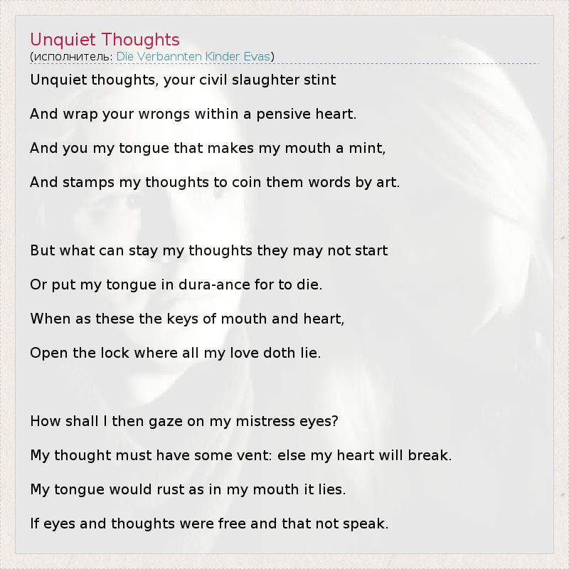 А как ты думаешь, о чем песня "Unquiet Thoughts" ?