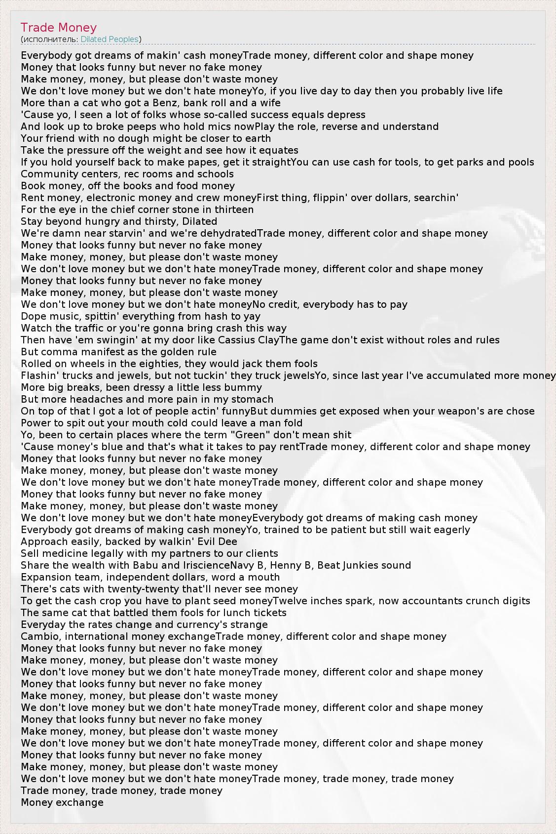А как ты думаешь, о чем песня "Trade Money" ?