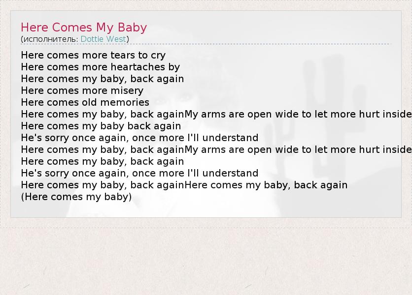 А как ты думаешь, о чем песня "Here Comes My Baby" ?