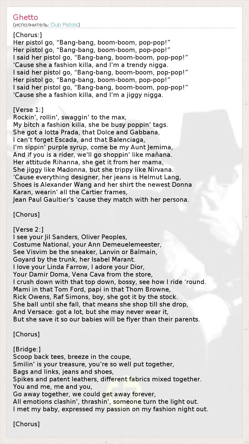 ‘Cause she a fashion killa, and I'm a trendy nigga.