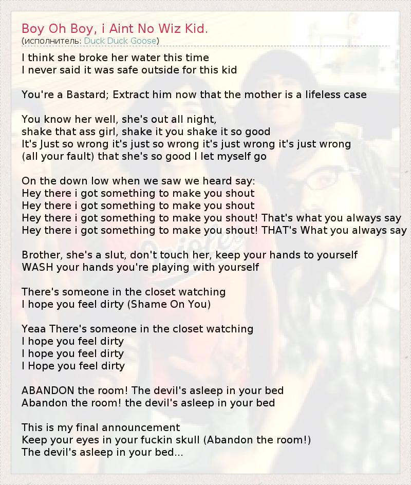 ГлавнаяИсполнителиDuck Duck GooseBoy Oh Boy, i Aint No Wiz Kid.