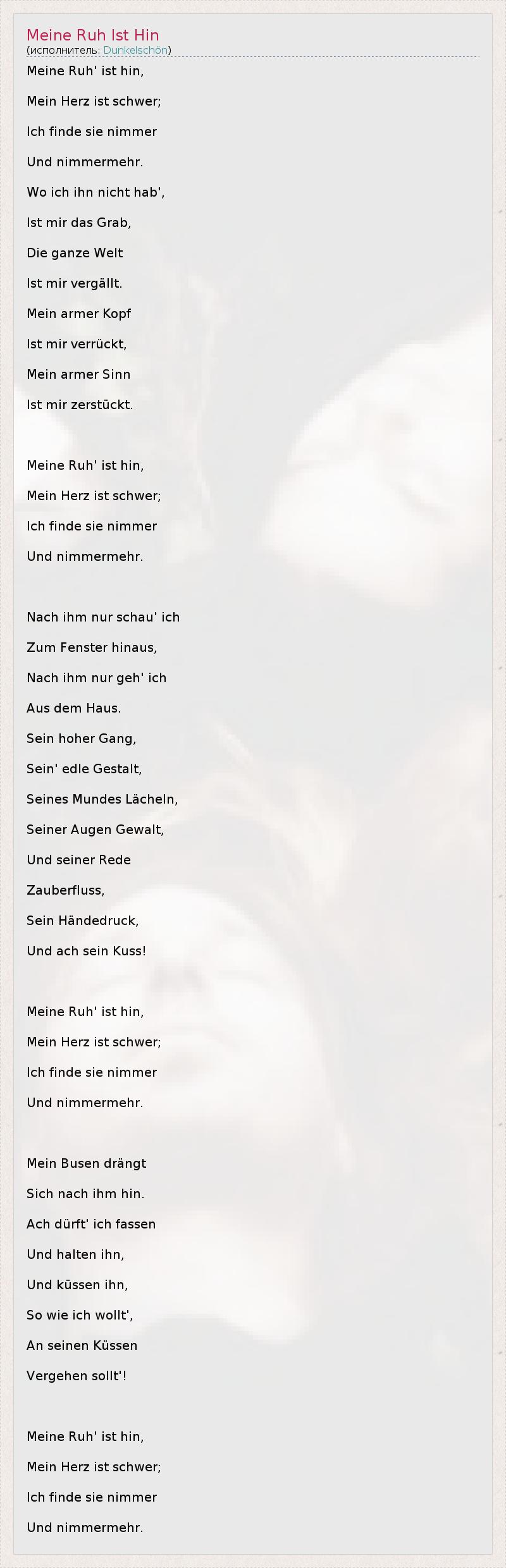 А как ты думаешь, о чем песня "Meine Ruh Ist Hin" ?