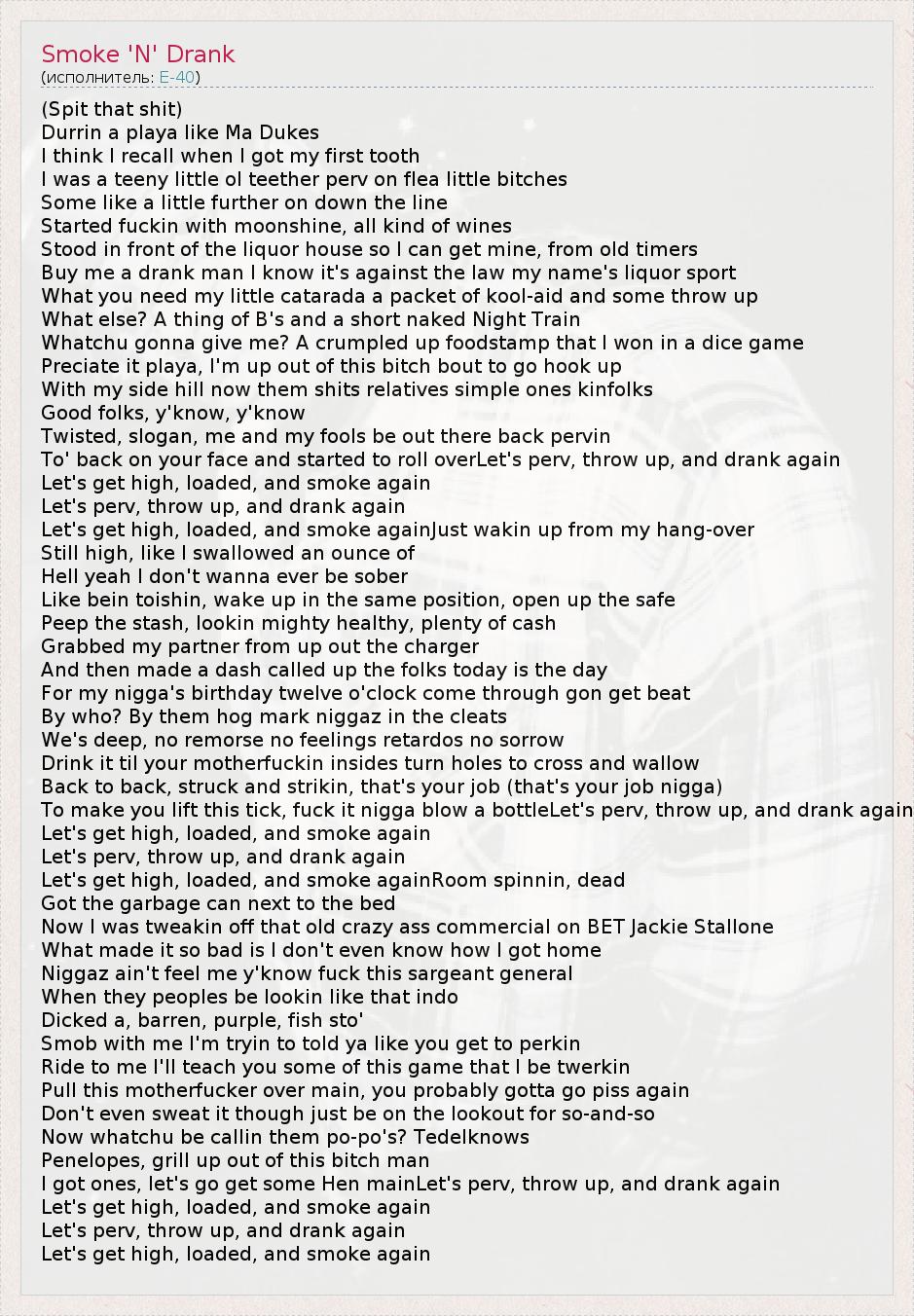 А как ты думаешь, о чем песня "Smoke 'N' Drank" ?