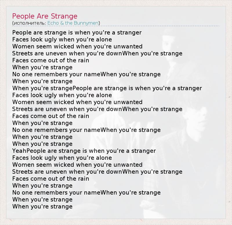 А как ты думаешь, о чем песня "People Are Strange" ?
