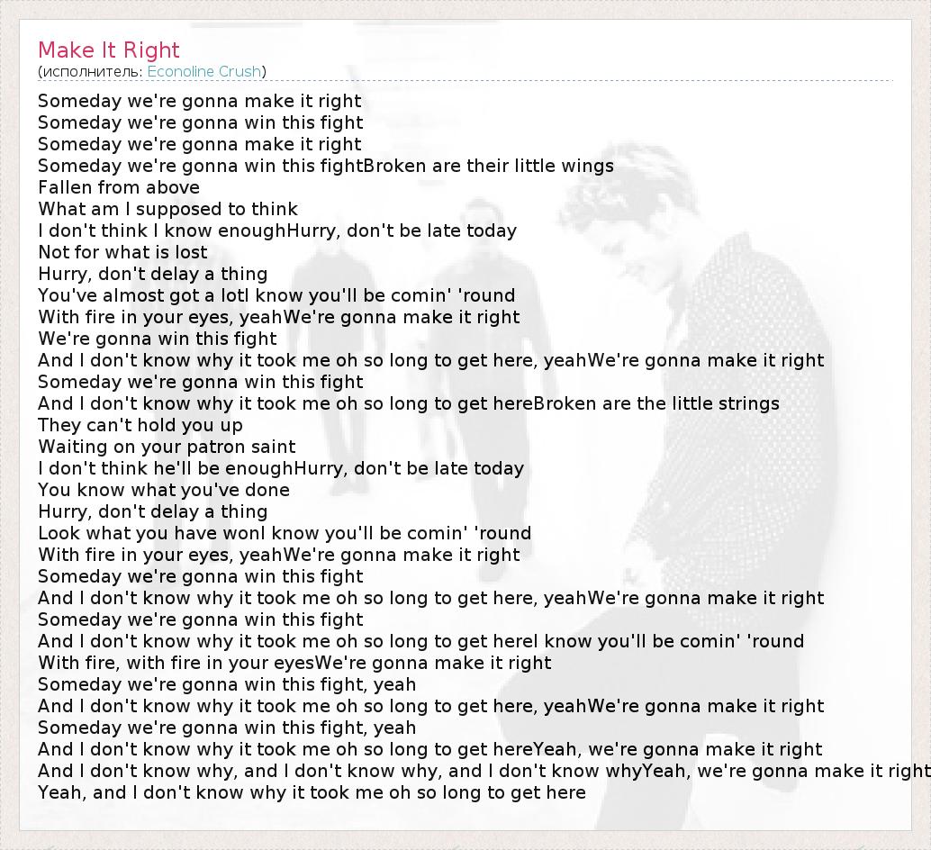And I don't know why, and I don't know why, and I don't know whyYeah, we're gonna make it right