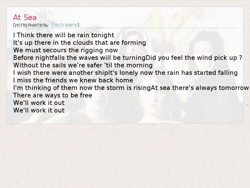 I'm thinking of them now the storm is risingAt sea there's always tomorrow