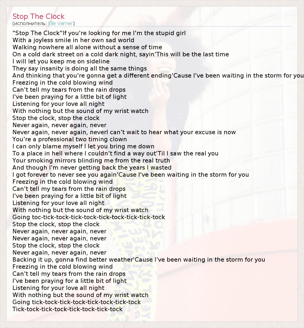 А как ты думаешь, о чем песня "Stop The Clock" ?