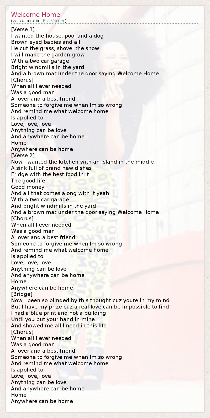 А как ты думаешь, о чем песня "Welcome Home" ?