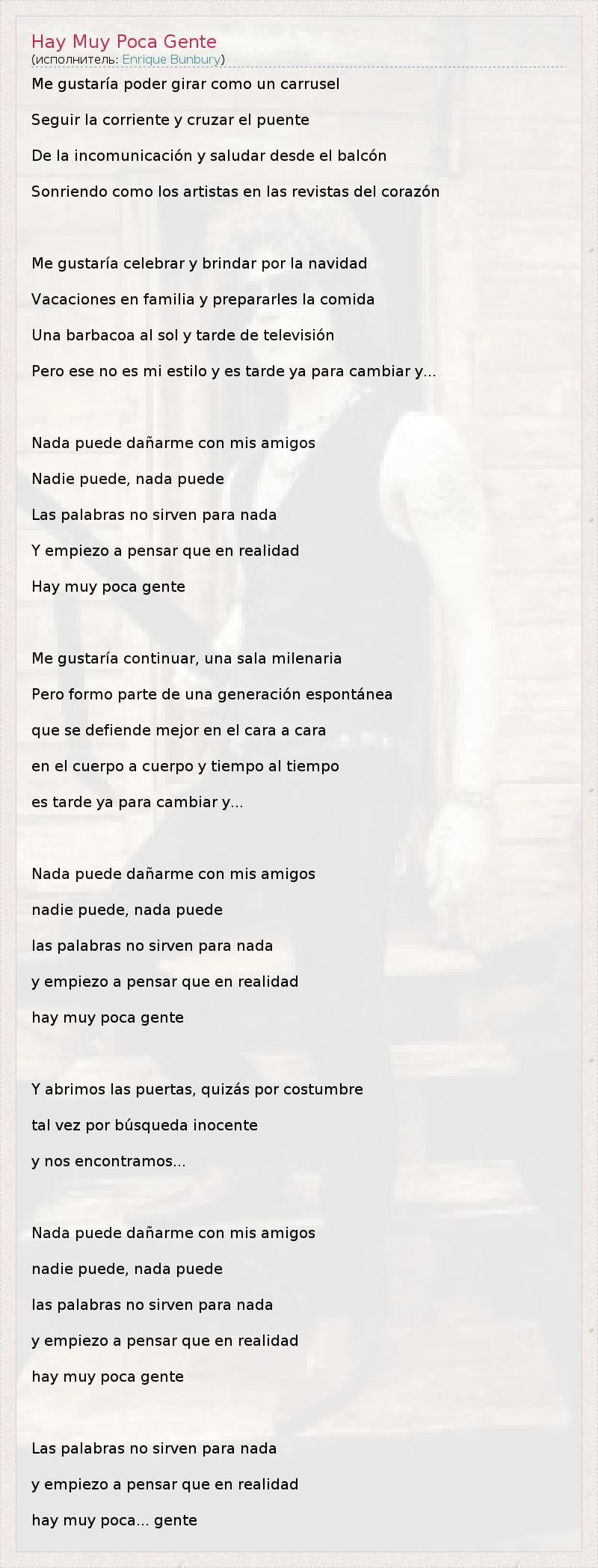 А как ты думаешь, о чем песня "Hay Muy Poca Gente" ?