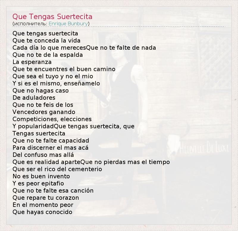 А как ты думаешь, о чем песня "Que Tengas Suertecita" ?
