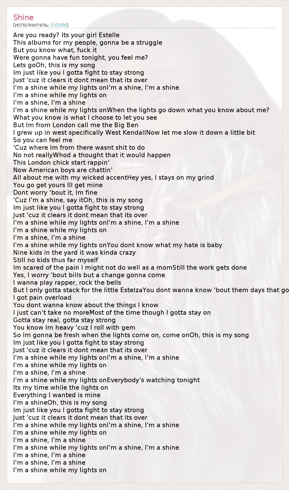 I'm a shine while my lights onI'm a shine, I'm a shine