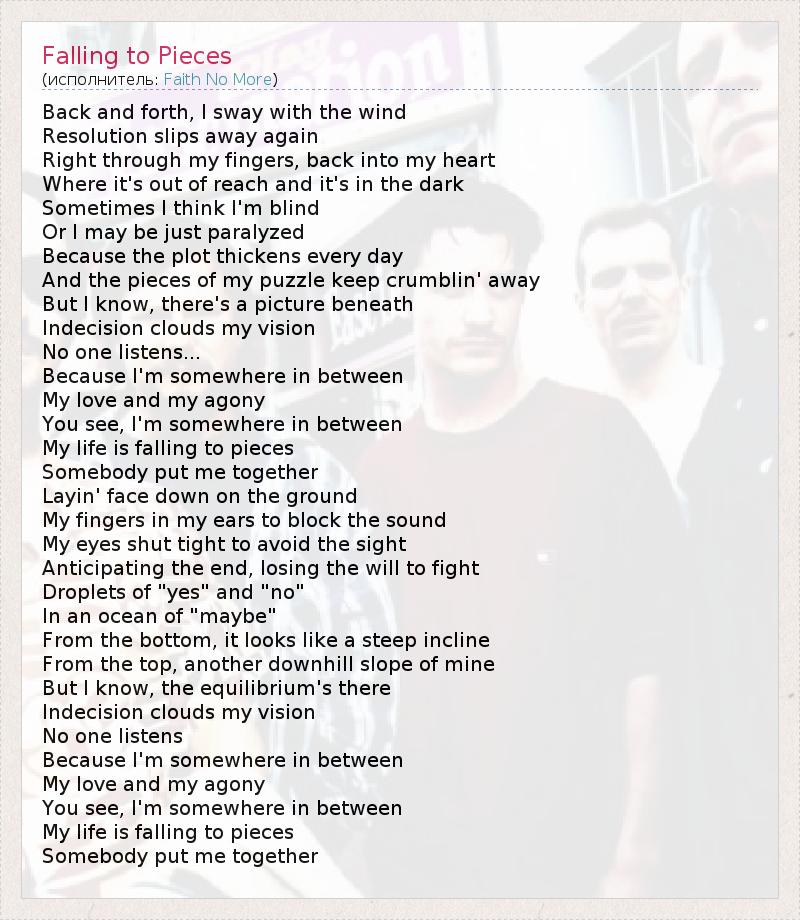А как ты думаешь, о чем песня "Falling to Pieces" ?
