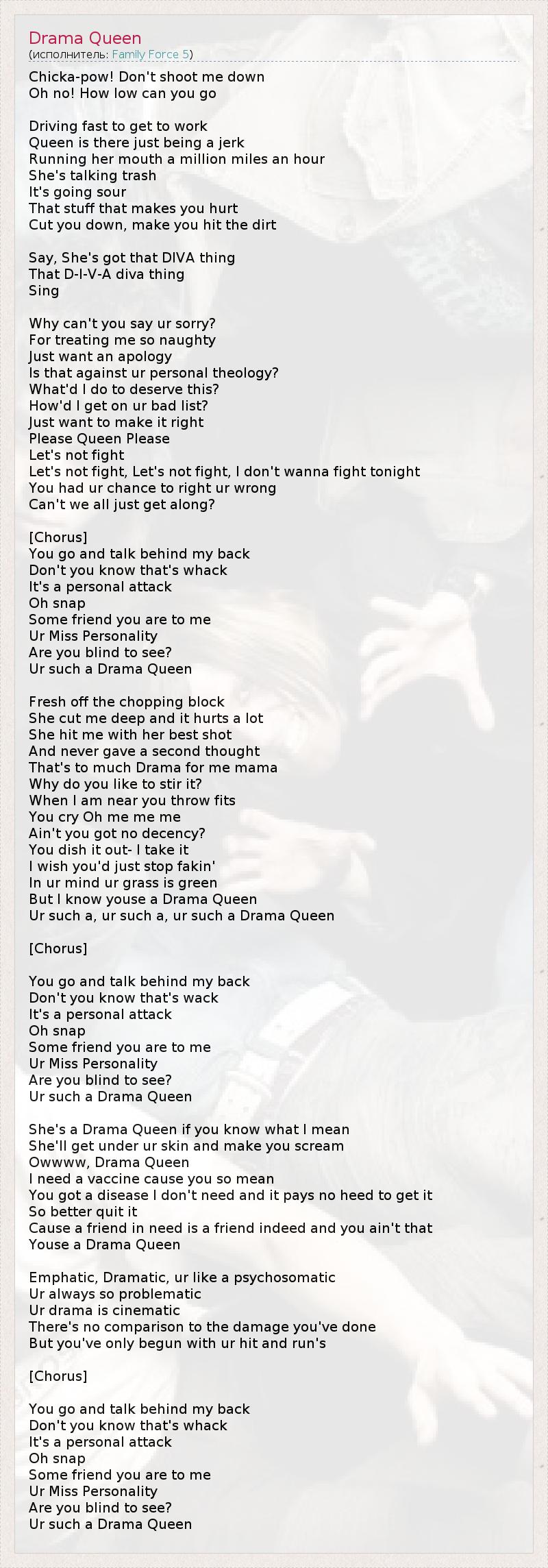 А как ты думаешь, о чем песня "Drama Queen" ?