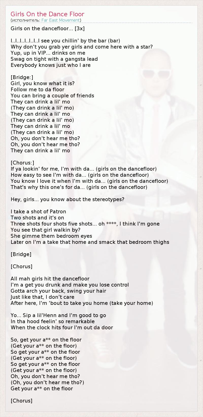 А как ты думаешь, о чем песня "Girls On the Dance Floor" ?