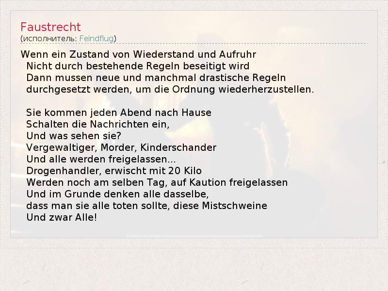 А как ты думаешь, о чем песня "Faustrecht" ?