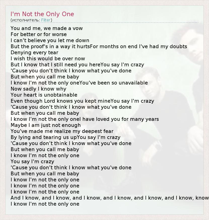 ГлавнаяИсполнителиFilterI'm Not the Only One