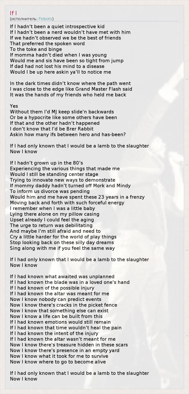 Если бы я знал, что стану агнцем, отправленным на заклание...
