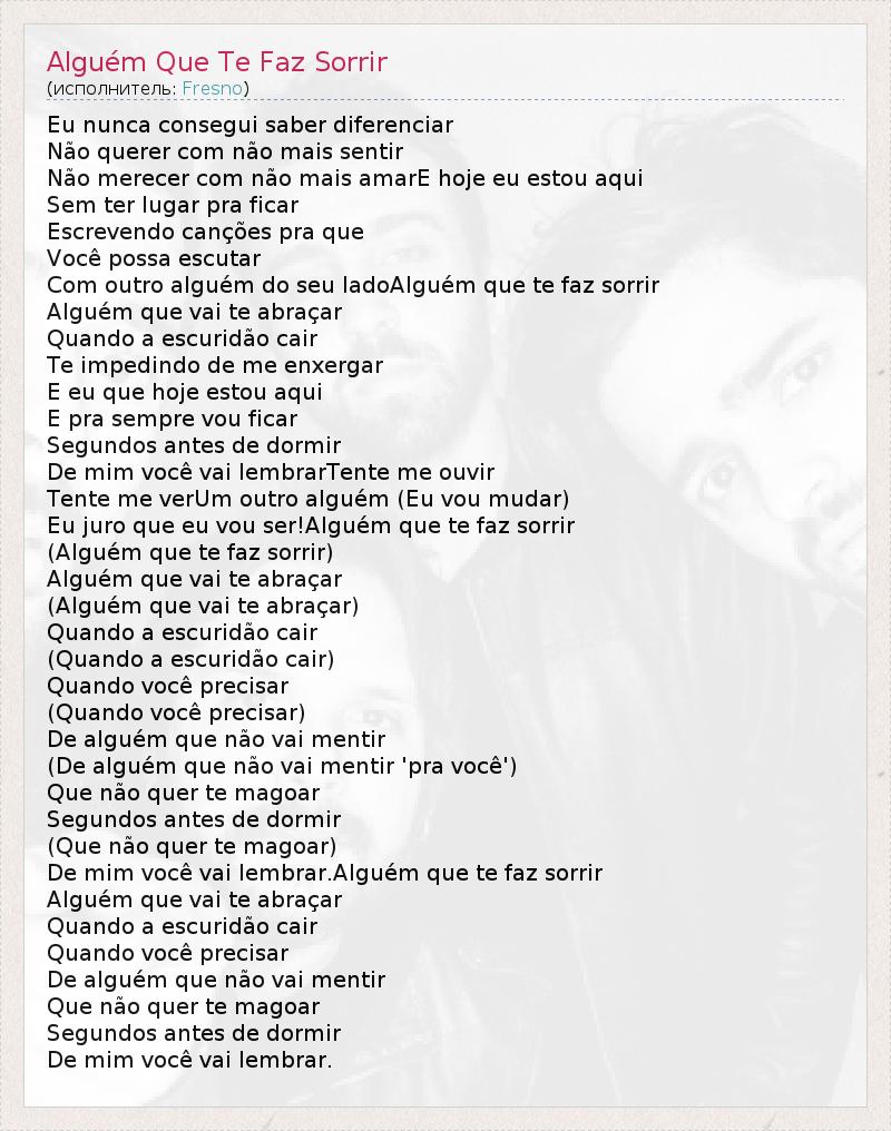 ГлавнаяИсполнителиFresnoAlguém Que Te Faz Sorrir