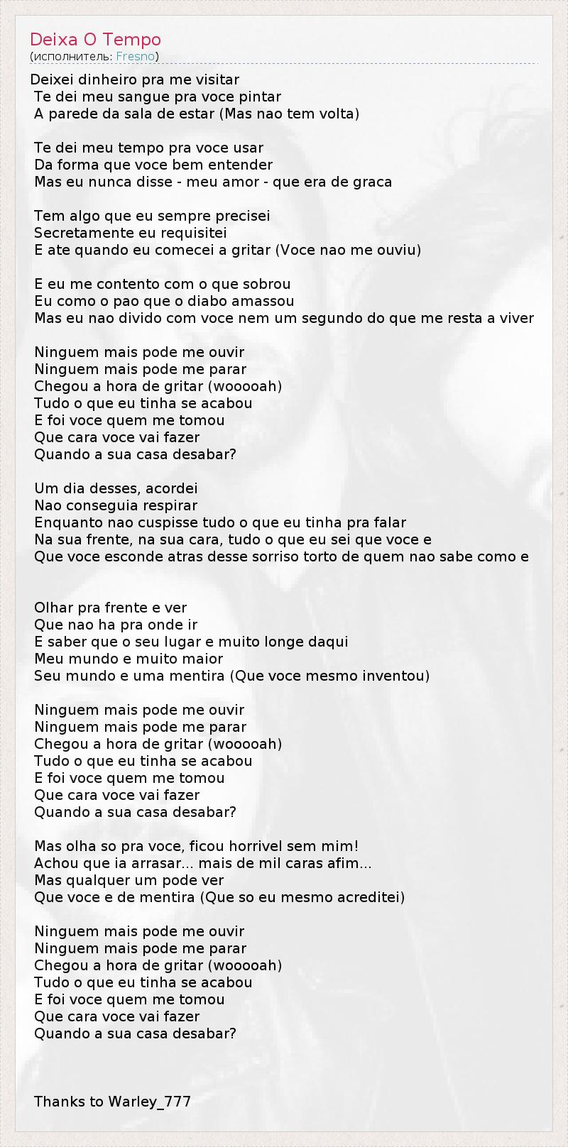 А как ты думаешь, о чем песня "Deixa O Tempo" ?