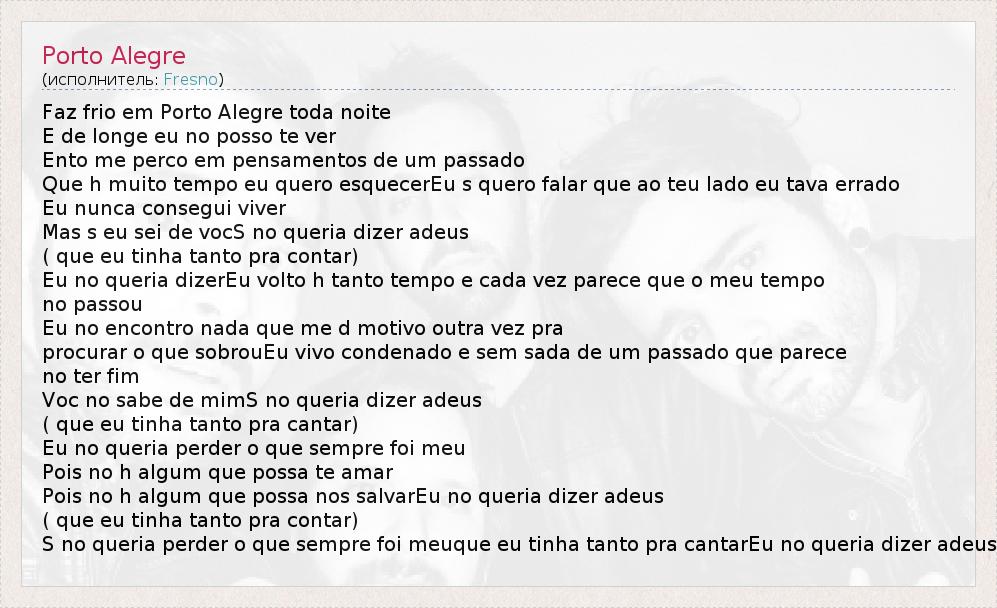 А как ты думаешь, о чем песня "Porto Alegre" ?