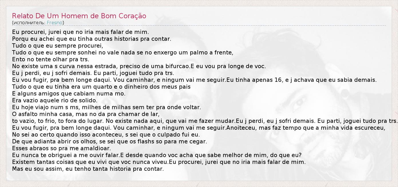 ГлавнаяИсполнителиFresnoRelato De Um Homem de Bom Coração