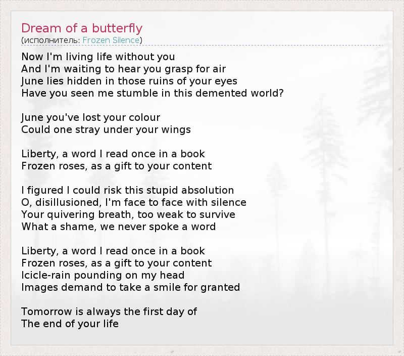 А как ты думаешь, о чем песня "Dream of a butterfly" ?