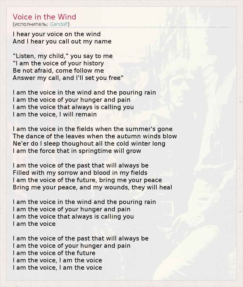 А как ты думаешь, о чем песня "Voice in the Wind" ?