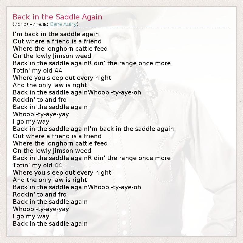 А как ты думаешь, о чем песня "Back in the Saddle Again" ?