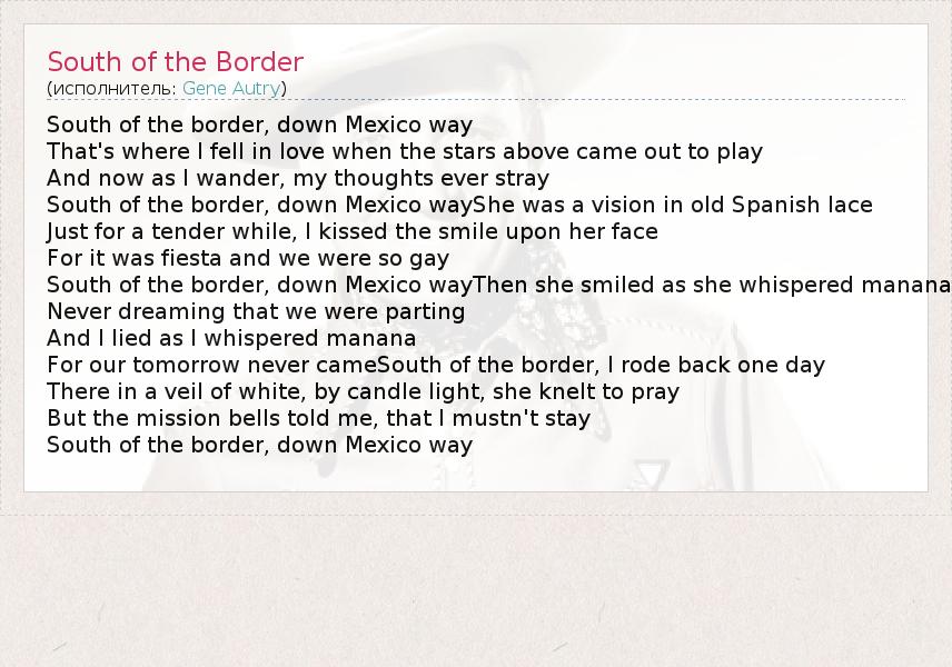 South of the border, down Mexico wayThen she smiled as she whispered manana