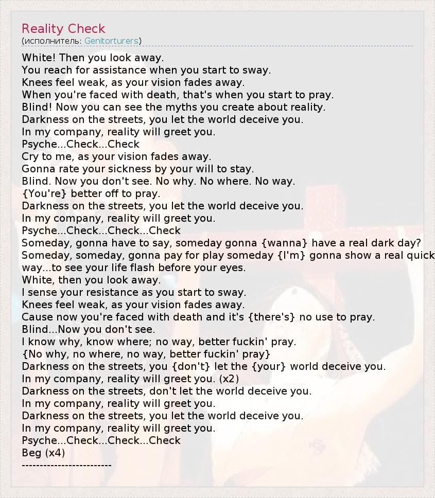 А как ты думаешь, о чем песня "Reality Check" ?