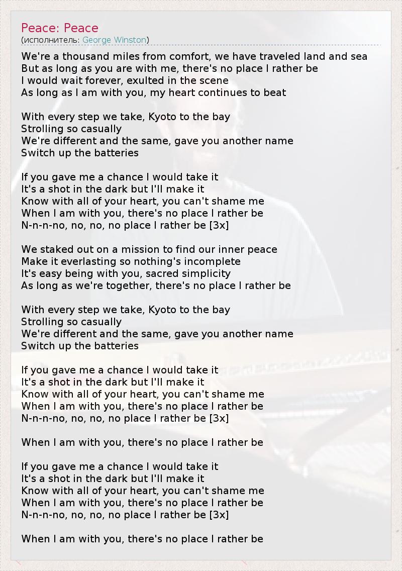 А как ты думаешь, о чем песня "Peace: Peace" ?
